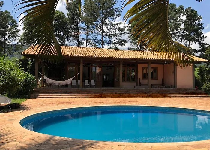 Die Villa Ferienhaus Sitio Das Posses - Zona Rural bietet einen Aufenthalt mit einem Außenpool und einer kompletten Küche. Die Unterkunft besteht aus 4 Schlafzimmern und 4 Badezimmern. Die Unterkunft bietet einen Aufenthalt für bis zu 10 Gäste.